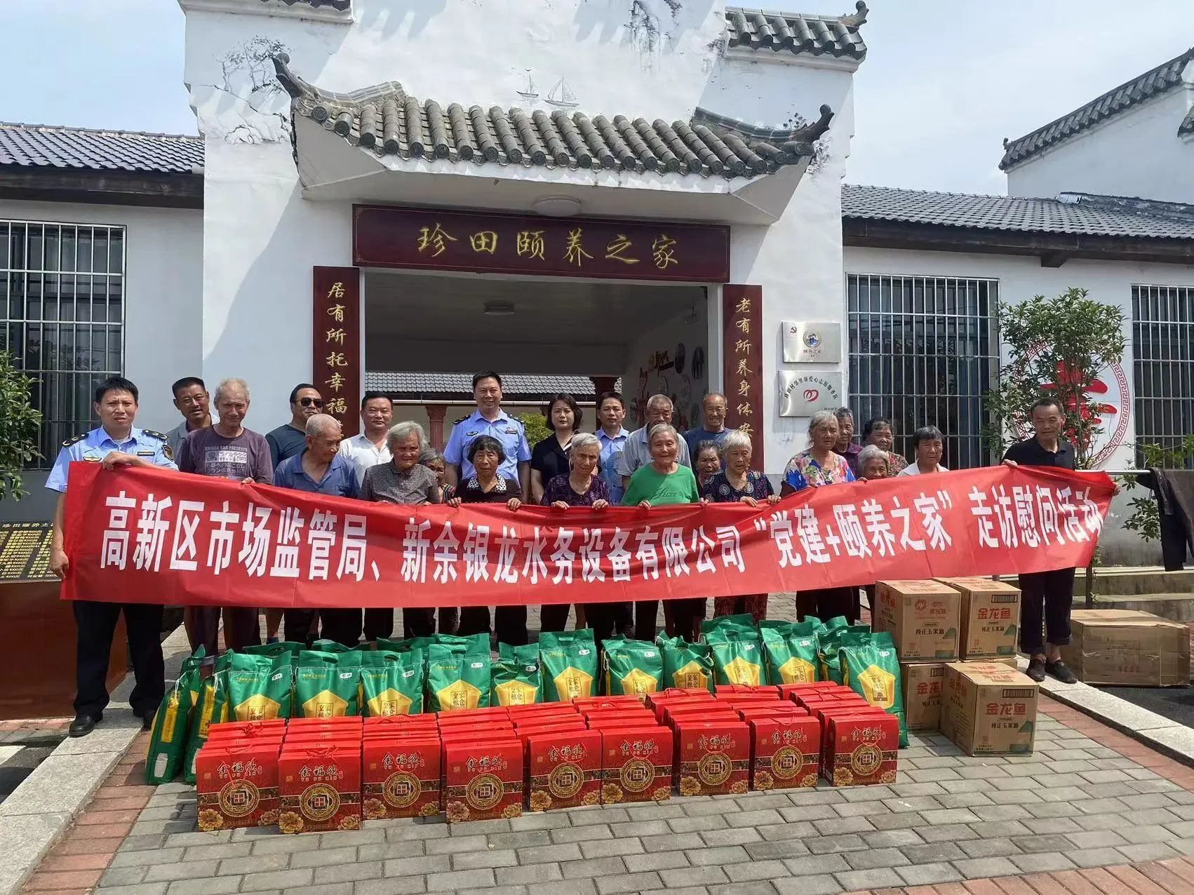 秋高氣爽,桂花飄香,在佳節(jié)來(lái)臨之際,高新區(qū)市場(chǎng)監(jiān)督管理局劉局、汪局等領(lǐng)導(dǎo)與新余銀龍水務(wù)設(shè)備有限公司副總經(jīng)理李軍華到水西鎮(zhèn)珍田村“頤養(yǎng)之家”進(jìn)行扶貧走訪(fǎng)活動(dòng)。給“頤養(yǎng)之家”的老人們送上米,油,月餅等慰問(wèn)品;并通過(guò)村委向頤養(yǎng)之家捐贈(zèng)愛(ài)心扶貧款。